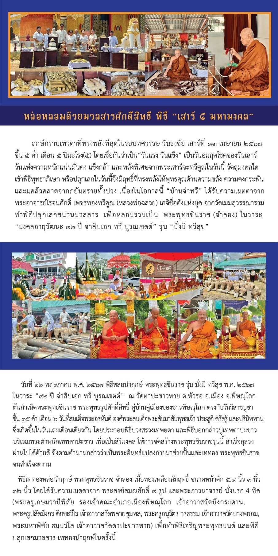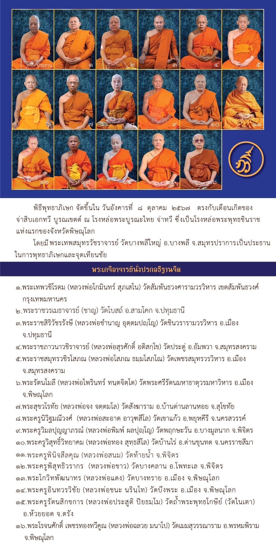 พระพุทธชินราช รุ่น มั่งมี ทวีสุข พ.ศ.2567
